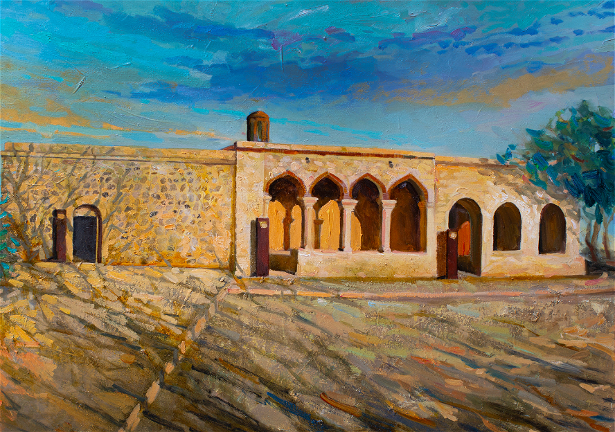Bu tabloda Qarabağ xanlığının bünövrəsinin qoyulduğu tarixi iqamətgahın əzəməti canlandırılıb. Rəssam kətan üzərində uca divarların və tağvari girişlərin monumentallığını ön plana çıxararaq, məkanda hökm sürən ab-havanı və güclü duruşu vurğulayıb.